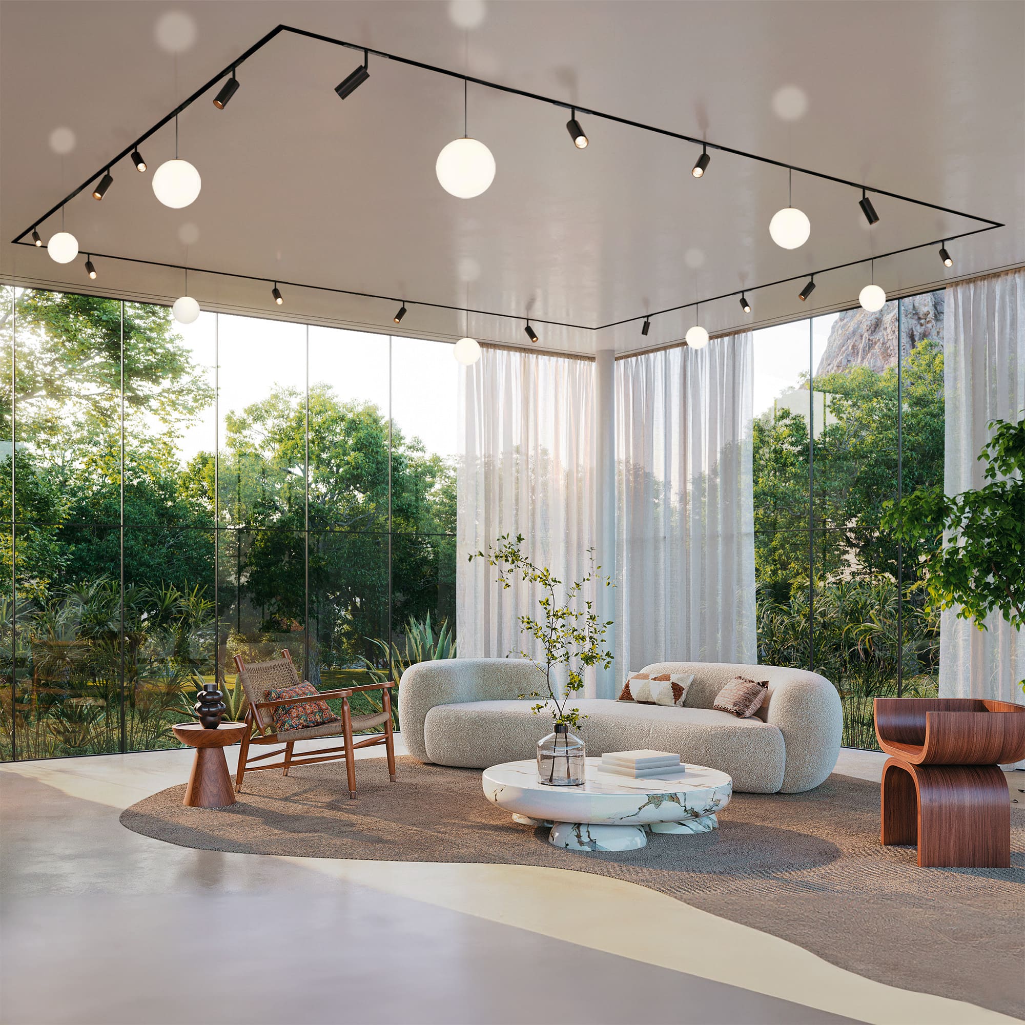 Квадратная форма трековой системы идеально впишется в современные интерьеры, подчеркивая стиль Вашего пространства.